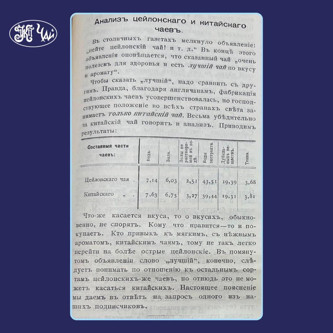 Наш старый друг и источник интереснейшей информации- журнал Чайный Вестник , зафиксировал важный момент появления конкурента у китайского чая в Российской империи в заметке « Анализ цейлонского и китайского чаёв»